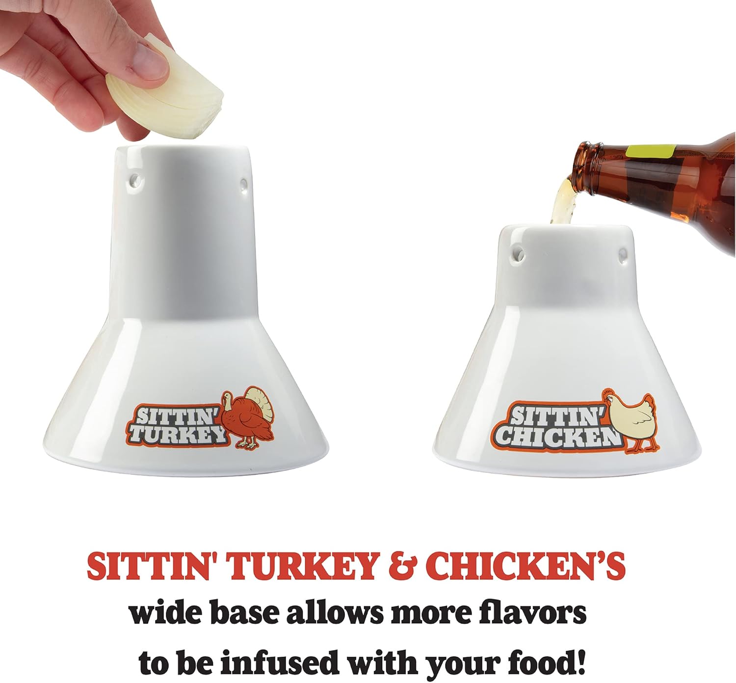 - Combo set includes 1 Sittin' Chicken Ceramic Beer Can Steamer & Roaster & 1 Sittin' Turkey Ceramic Beer Can Steamer & Roaster